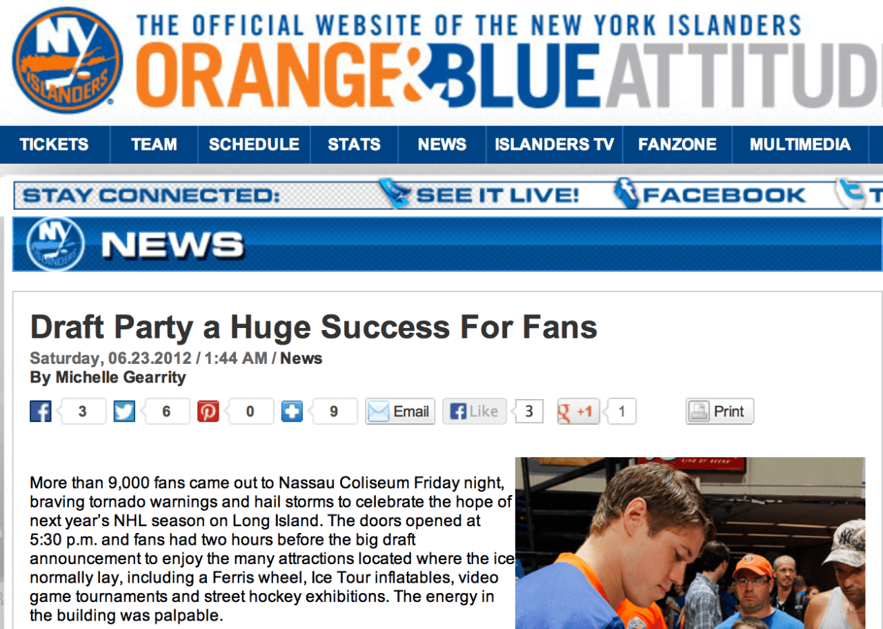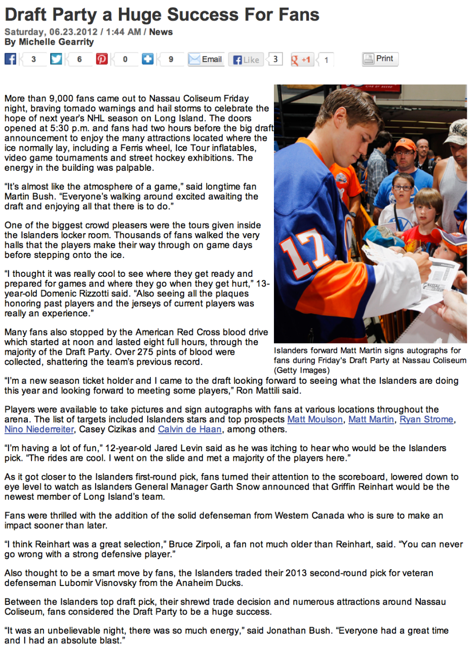 Draft Party a Huge Success For Fans Date: June 3, 2013Author: mfgearrity Category: Articles, New York Islanders Post navigation ← Young Long Islanders Strive to Make Jr.Isles Roster Tavares Credits The Fans → Click here to read article at newyorkislanders.com Share this: Share on X (Opens in new window) X Share on Facebook (Opens in new window) Facebook Like Loading... Related